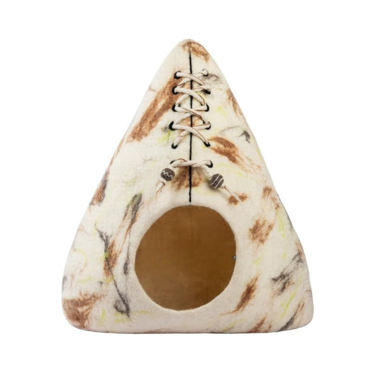 Grotte pour chat en laine mérinos écologique – Lit pliable en feutre – Maison couverte pour chat d’intérieur – Design tipi marbré