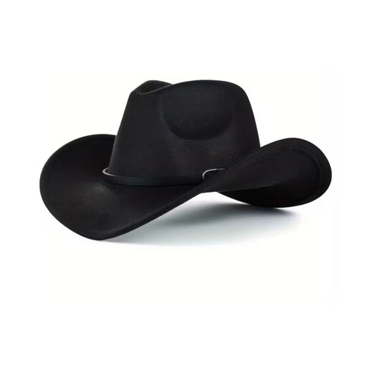 Chapeau de cow-boy occidental en feutre – Style jazz à bord roulé – Accessoire unisexe – Noir ou bleu royal