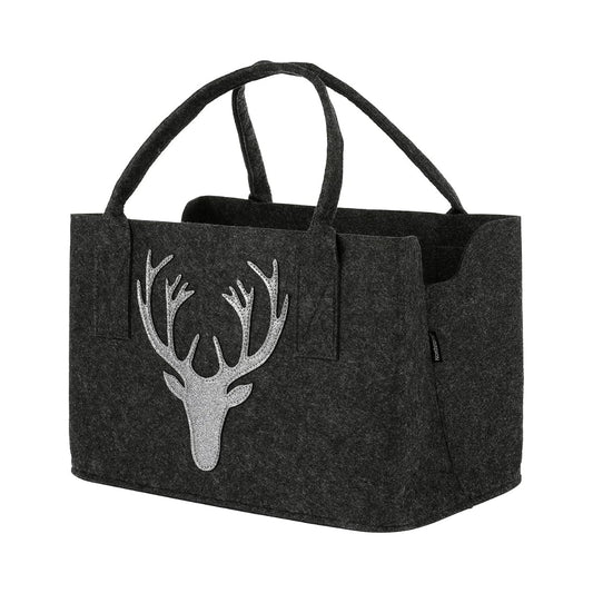 Sac en feutre gris foncé motif cerf – cabas polyvalent 40 x 25 cm