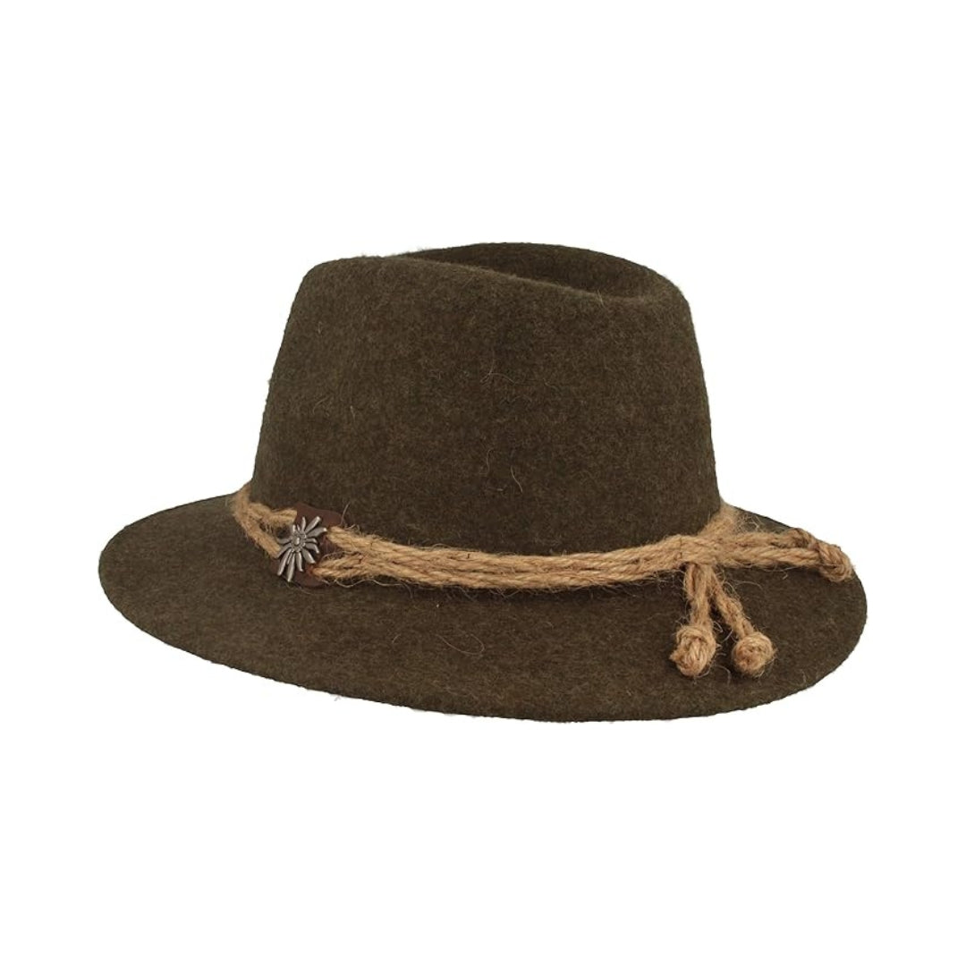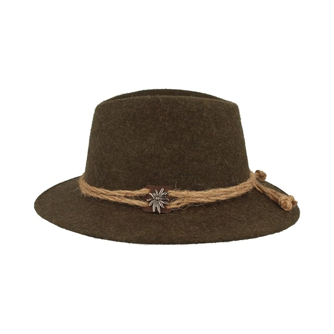 Chapeau tyrolien homme en feutre de laine avec cordon chanvre et edelweiss