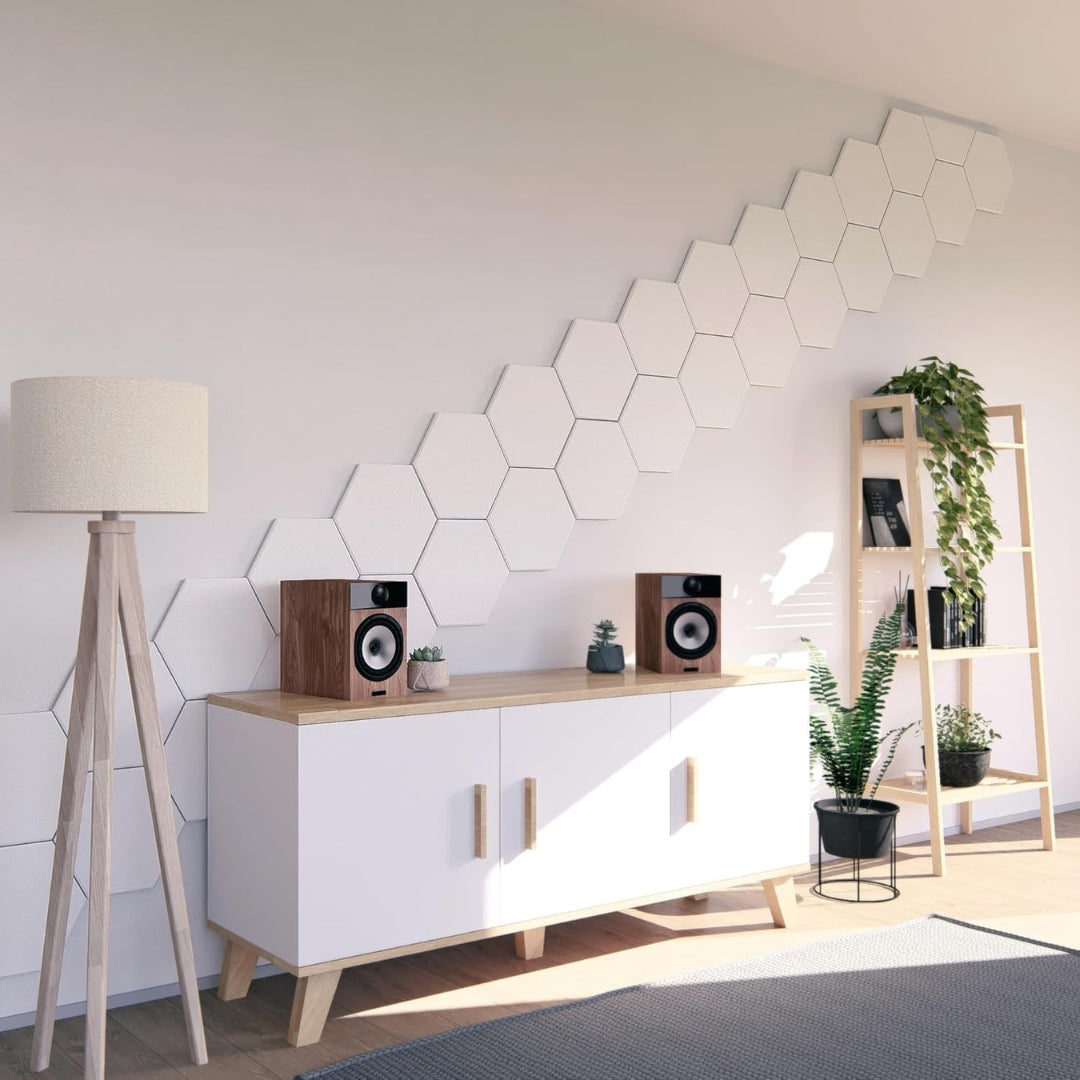 Ces panneaux acoustiques hexagonaux en feutre recyclé sont parfaits pour réduire les nuisances sonores et améliorer le confort acoustique d’une pièce. Leur design moderne et modulable permet de créer des compositions murales originales en gris ou en blanc, idéales pour un bureau, un salon ou un espace de travail. Faciles à poser grâce à leur dos autocollant, ils apportent à la fois efficacité et élégance à vos intérieurs.