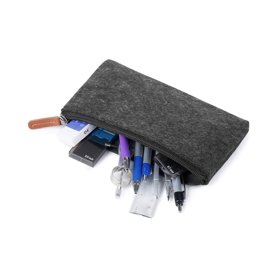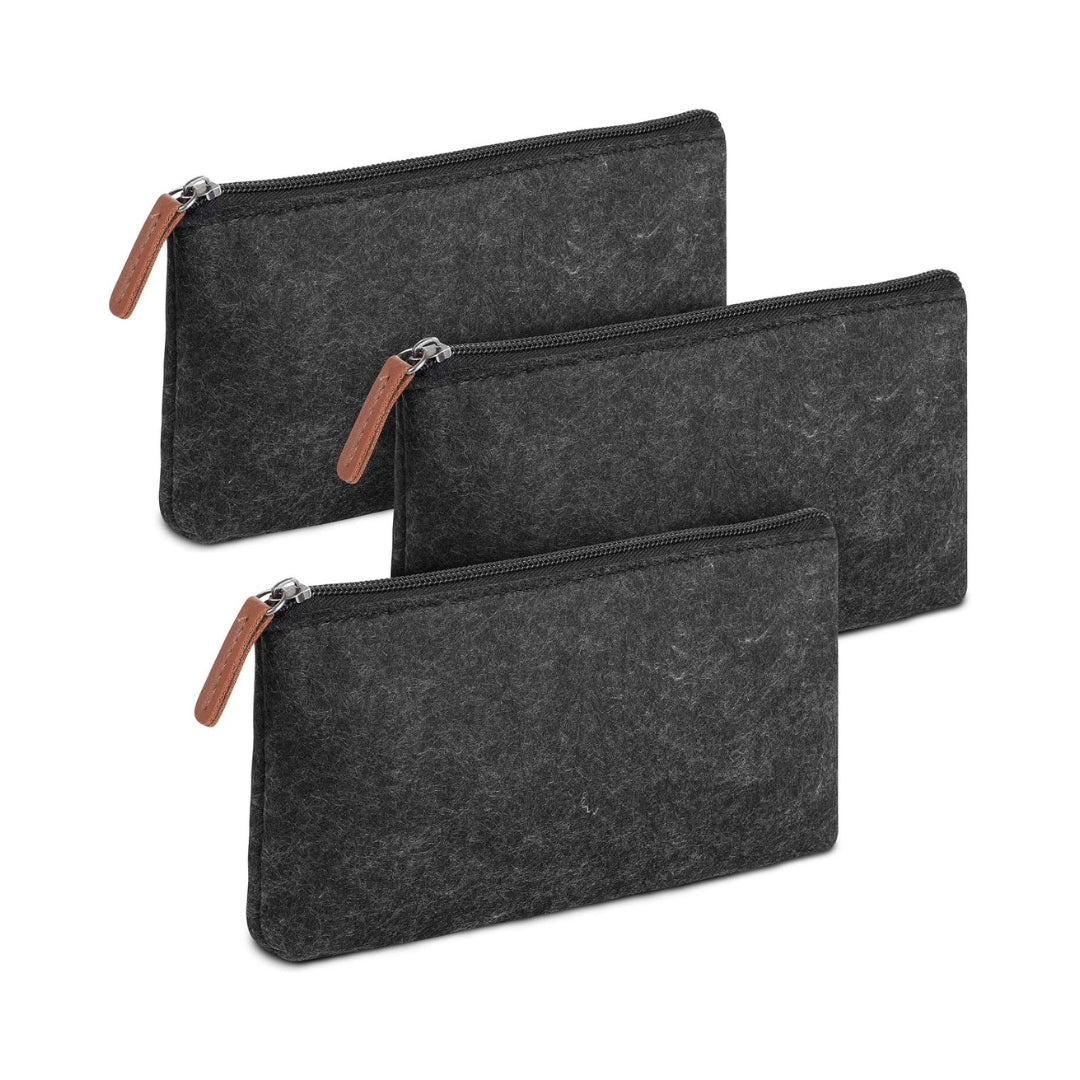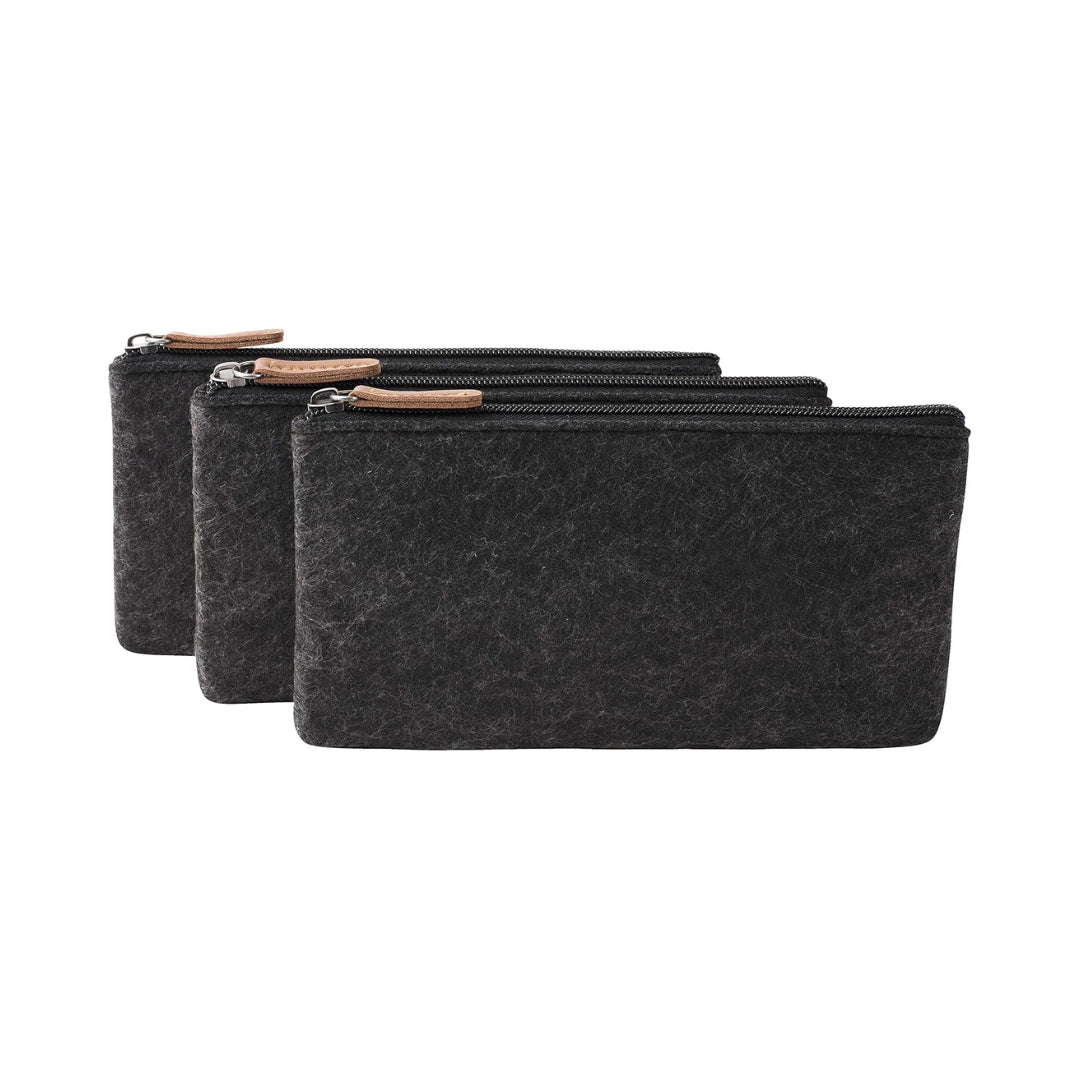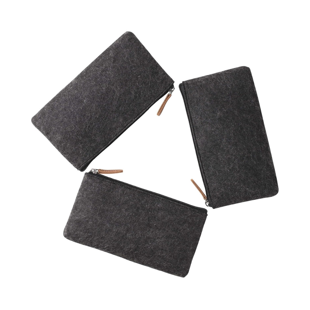 Lot de 3 trousses en feutre noir avec fermeture éclair et tirette imitation cuir. Compactes, élégantes et résistantes, elles sont idéales pour organiser vos stylos, crayons, accessoires de bureau, maquillage ou petits objets du quotidien.
