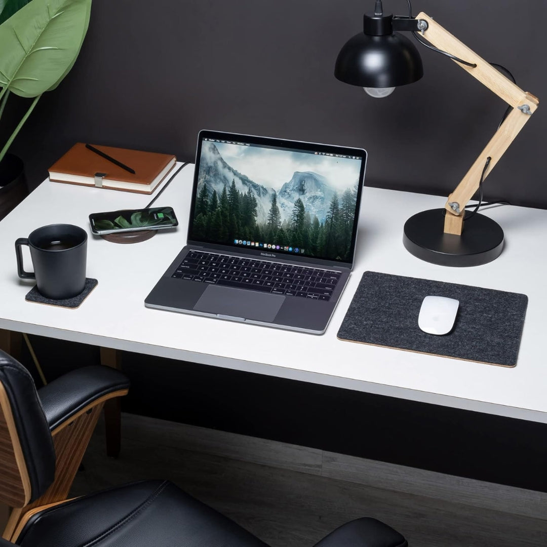Tapis de souris en feutre de laine et liège – Accessoire de bureau 28 x 22 cm, antidérapant et lavable